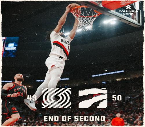 猛龍隊的奎克利上半場得到11分和5個籃板,馬姆科拉什維利得到11分;開拓者隊的夏普得到13分,克林根得到4分和10個籃板,楊瀚森搶到3個籃板。